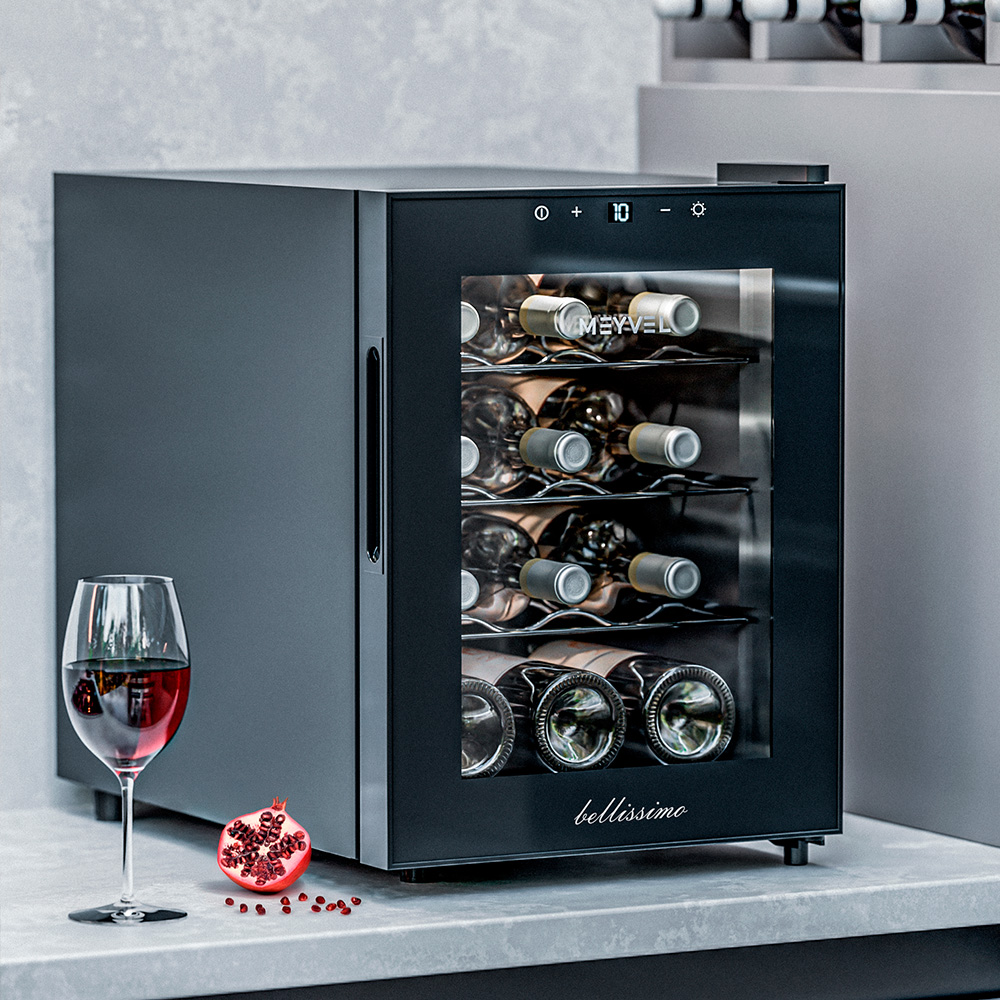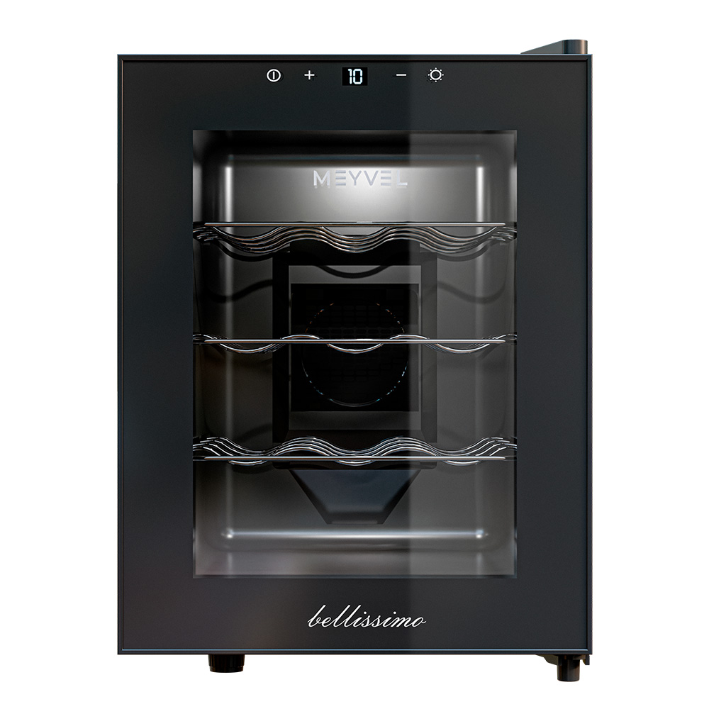 Meyvel MV12-TBF1 — это винный шкаф, рассчитанный на 12 бутылок, а значит, подойдёт не только коллекционерам, но и тем, кто просто любит держать под рукой пару любимых сортов для ужина или праздничного вечера. Благодаря термоэлектрической системе охлаждения он работает тихо, стабильно и не требует сложного обслуживания.